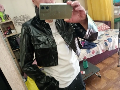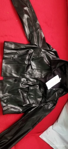 Chic cropped black leather jacket with button-down finish. A modern streetwear essential that blends luxury, edge, and timeless confidence for contemporary women’s fashion.