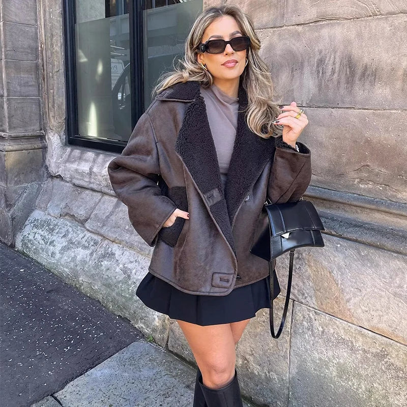 Double Sided Fur One Jacket Cotton Clothes Lamb Wool Coat Leather Jackets Women's Warm Loose Thick Lapel Fashion Casual Overcoat