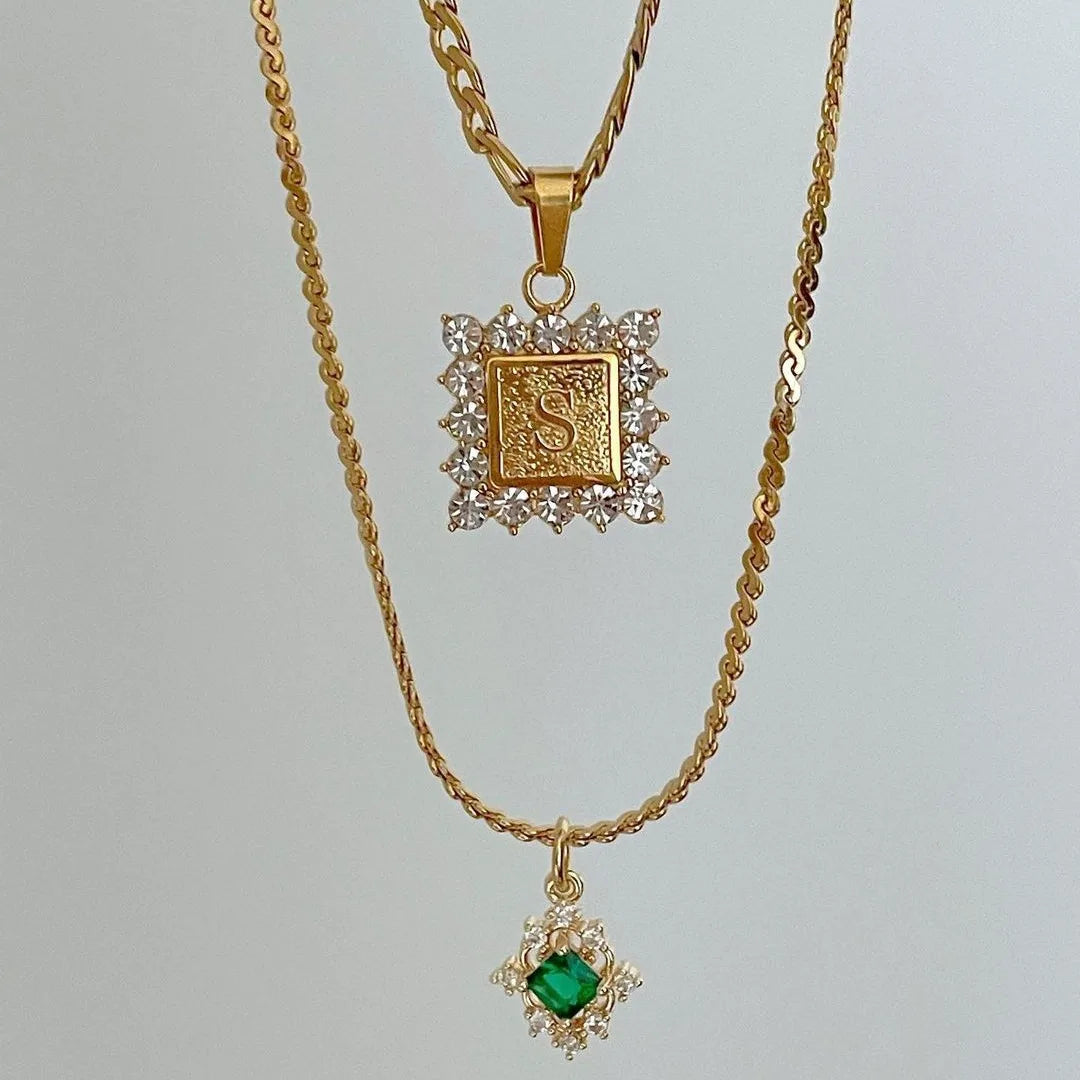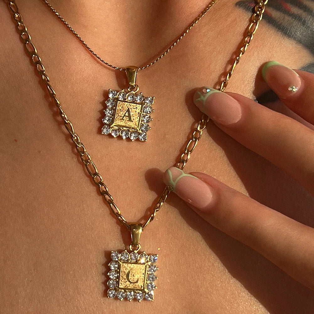 Personalized Tarnish-Free Stainless Steel 18K Gold Plated Zircon Letter Pendant Choker Necklace for Women